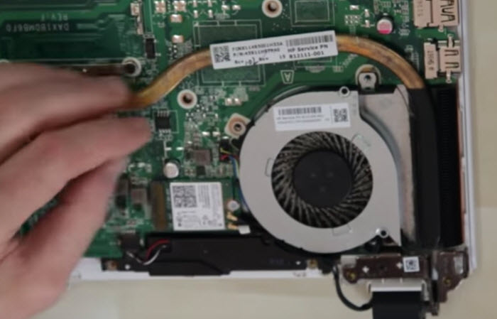 a.) Remove the panel under the keyboard. Remove the screws holding the fan in place. Make sure you clean a noisy laptop fan while you can.