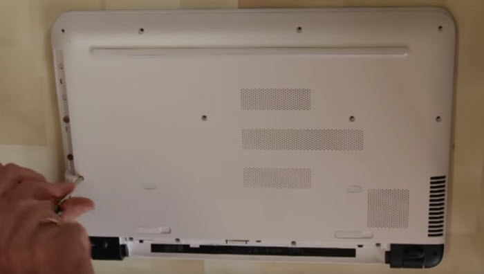 d.) Remove all components from the laptop to find the screws hidden inside the compartments and remove them.